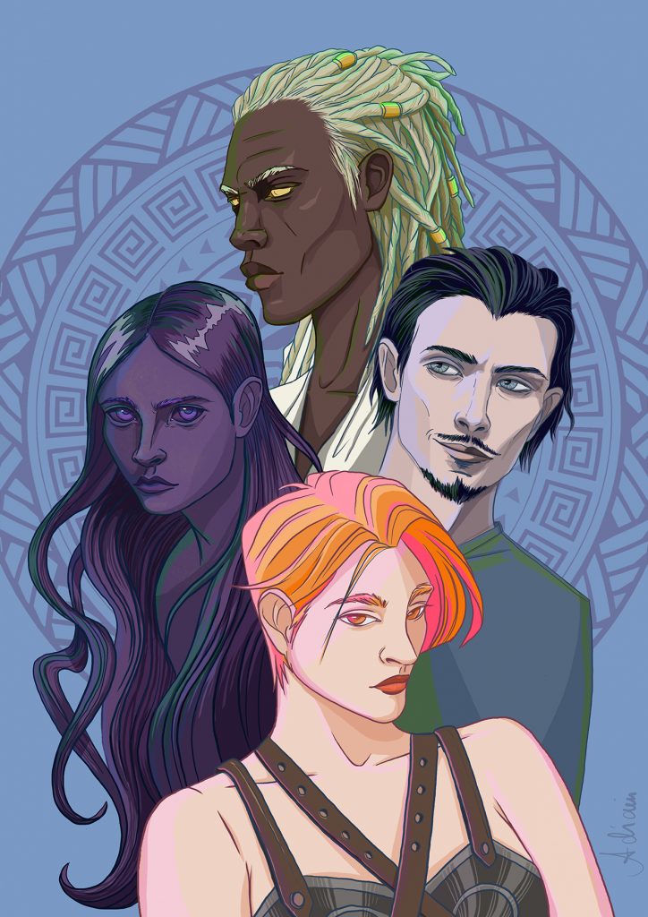 Wenn ich The Olympian Job kurz vorstellen soll, dann nenne ich meine Geschichte gerne Percy Jackson meets Ocean’s Eleven. Immerhin geht es um eine Heist-Geschichte und Gottheiten mit unterschiedlichen kulturellen Wurzeln. Über die Welt möchte ich nicht zuviel erzählen, weil ich glaube, dass es sehr spannend ist, sie selbst zu entdecken.
